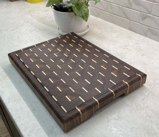 Walnut with Maple Accent End Grain Cutting BoardRegular price $285.00 CADRegular priceUnit price / per-