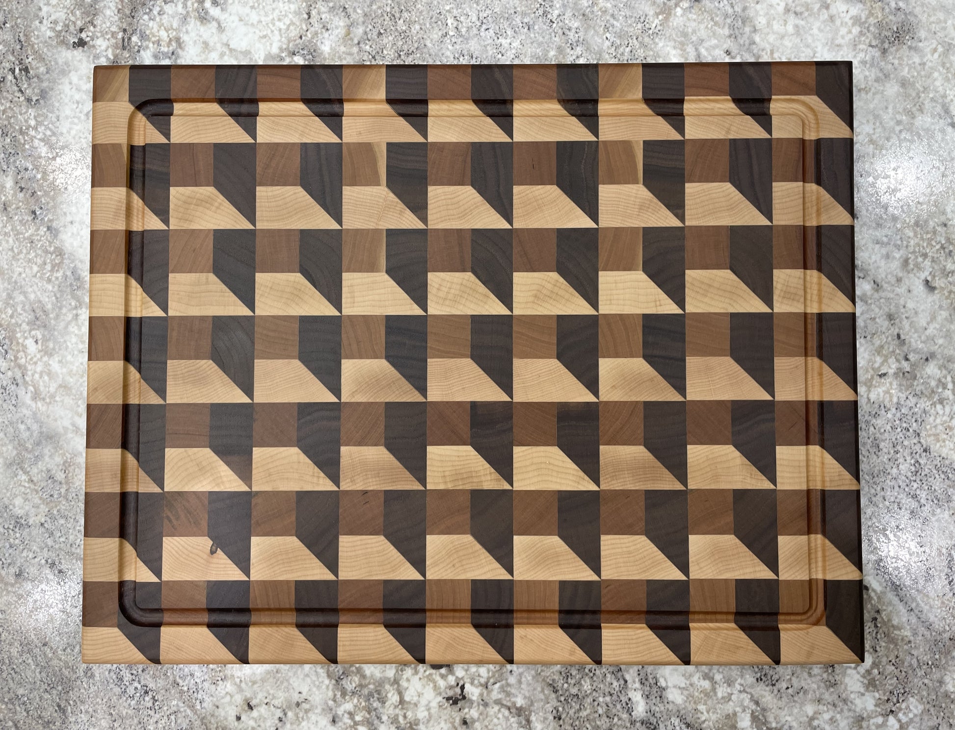 3D End Grain Walnut, Cherry and Maple Waffle Cutting Board