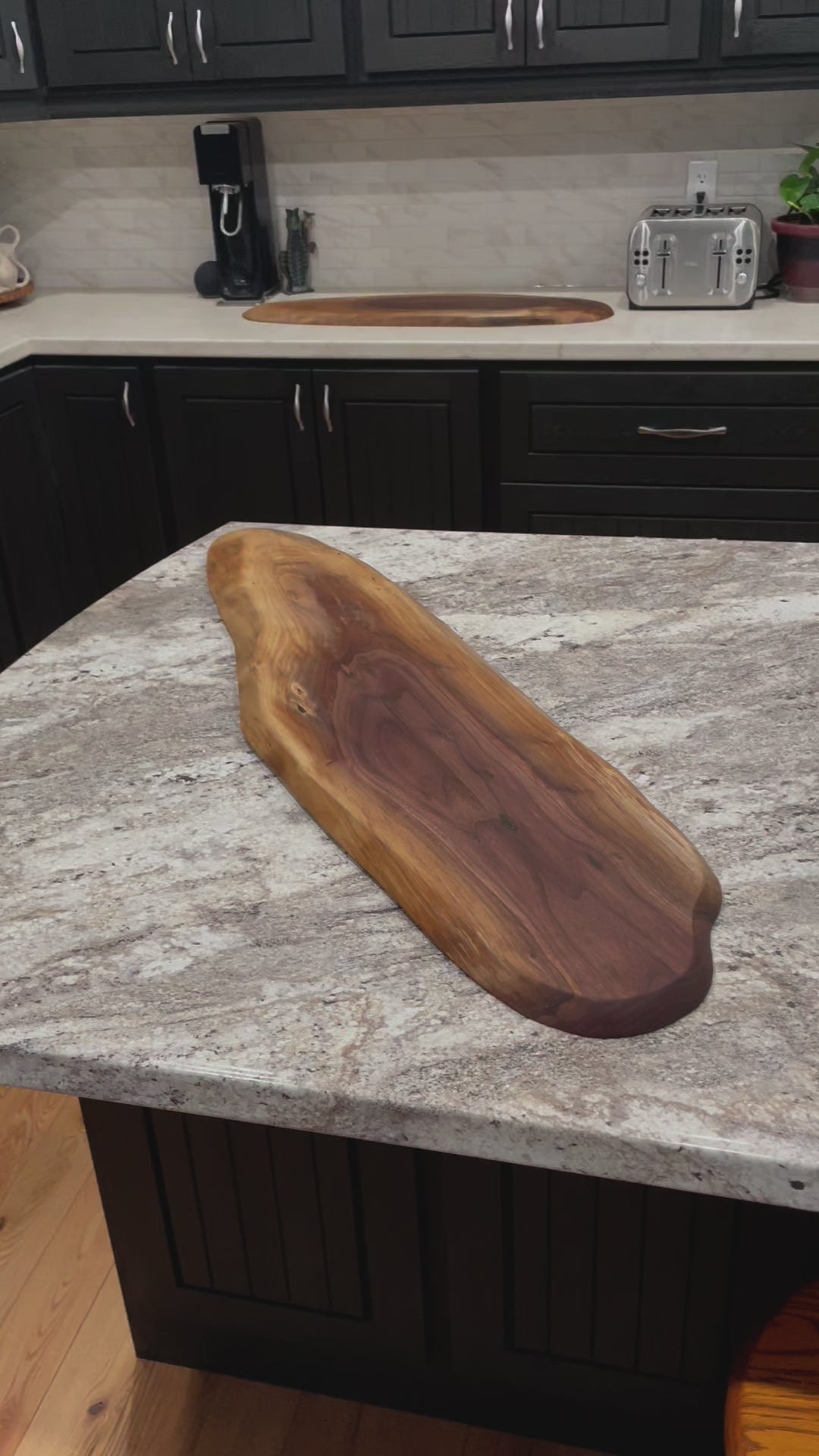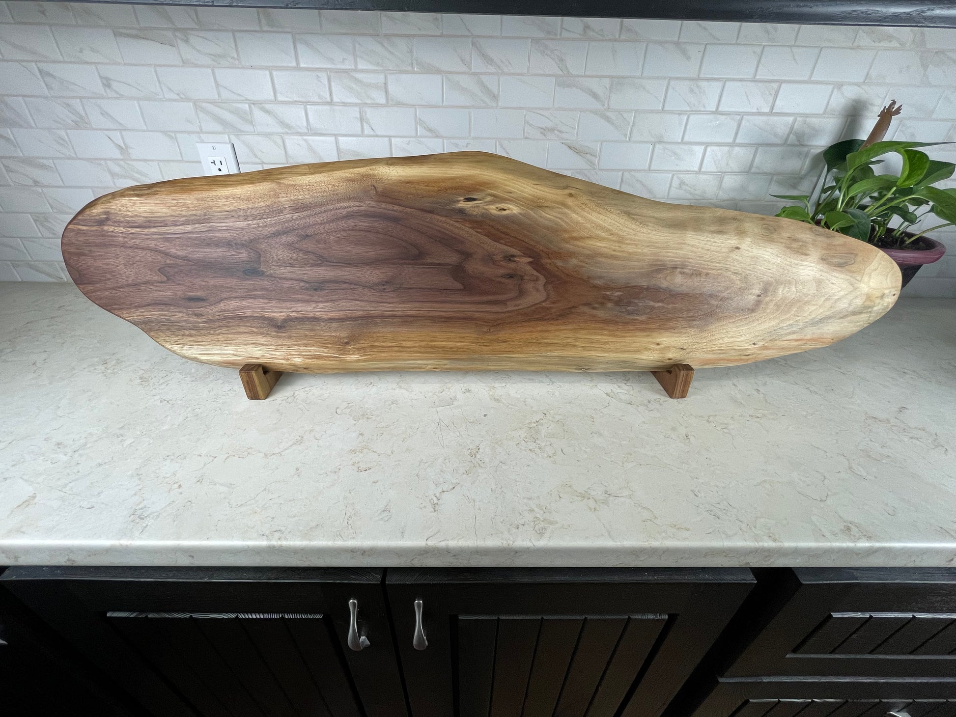 Each piece is its own bold, natural statement. Each board comes with black handles as well as adjustable feet
