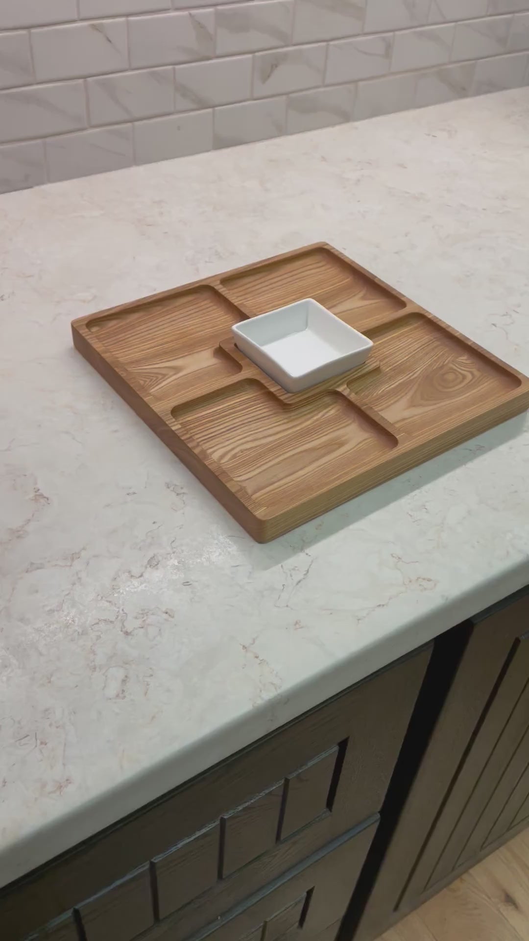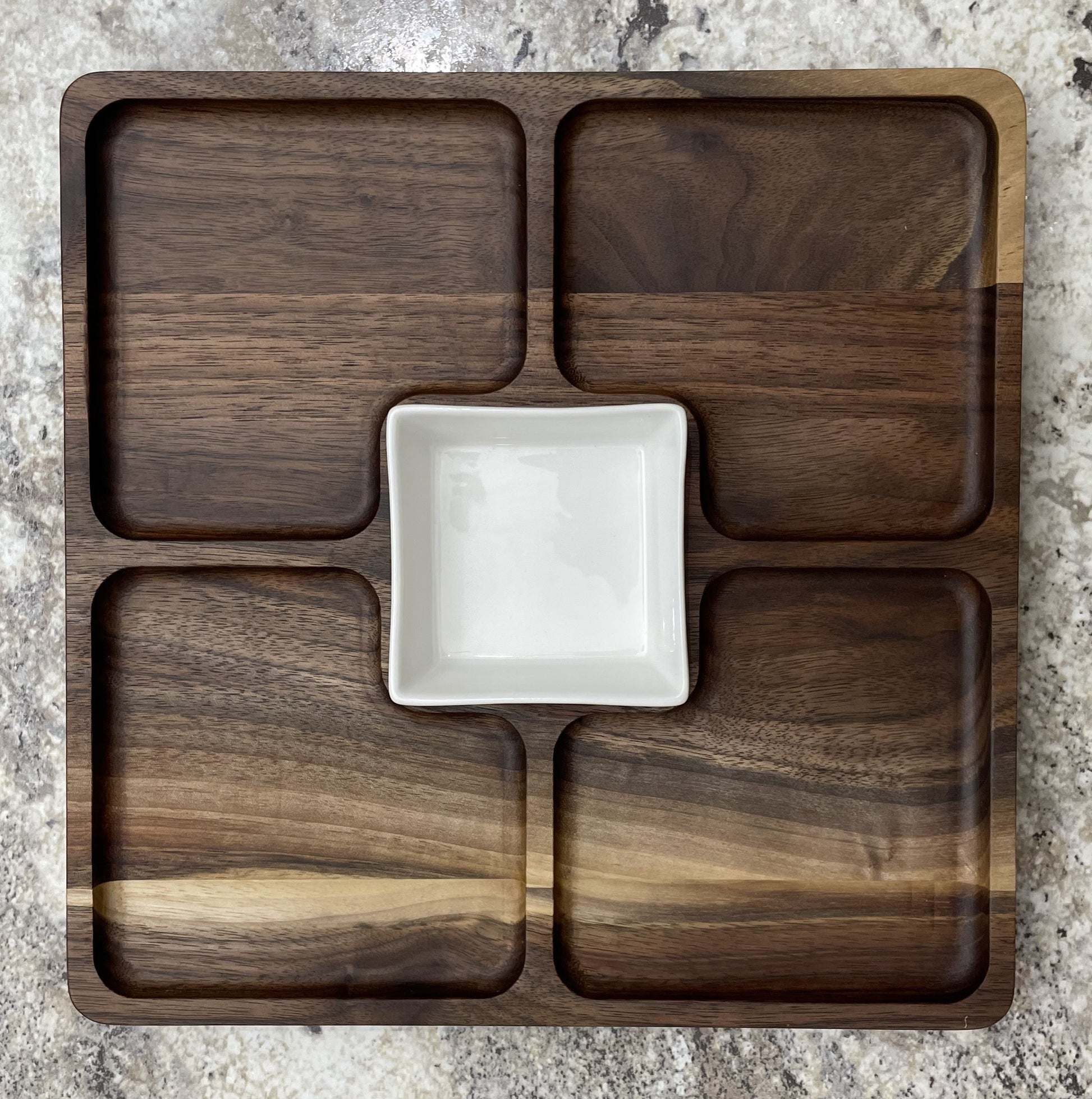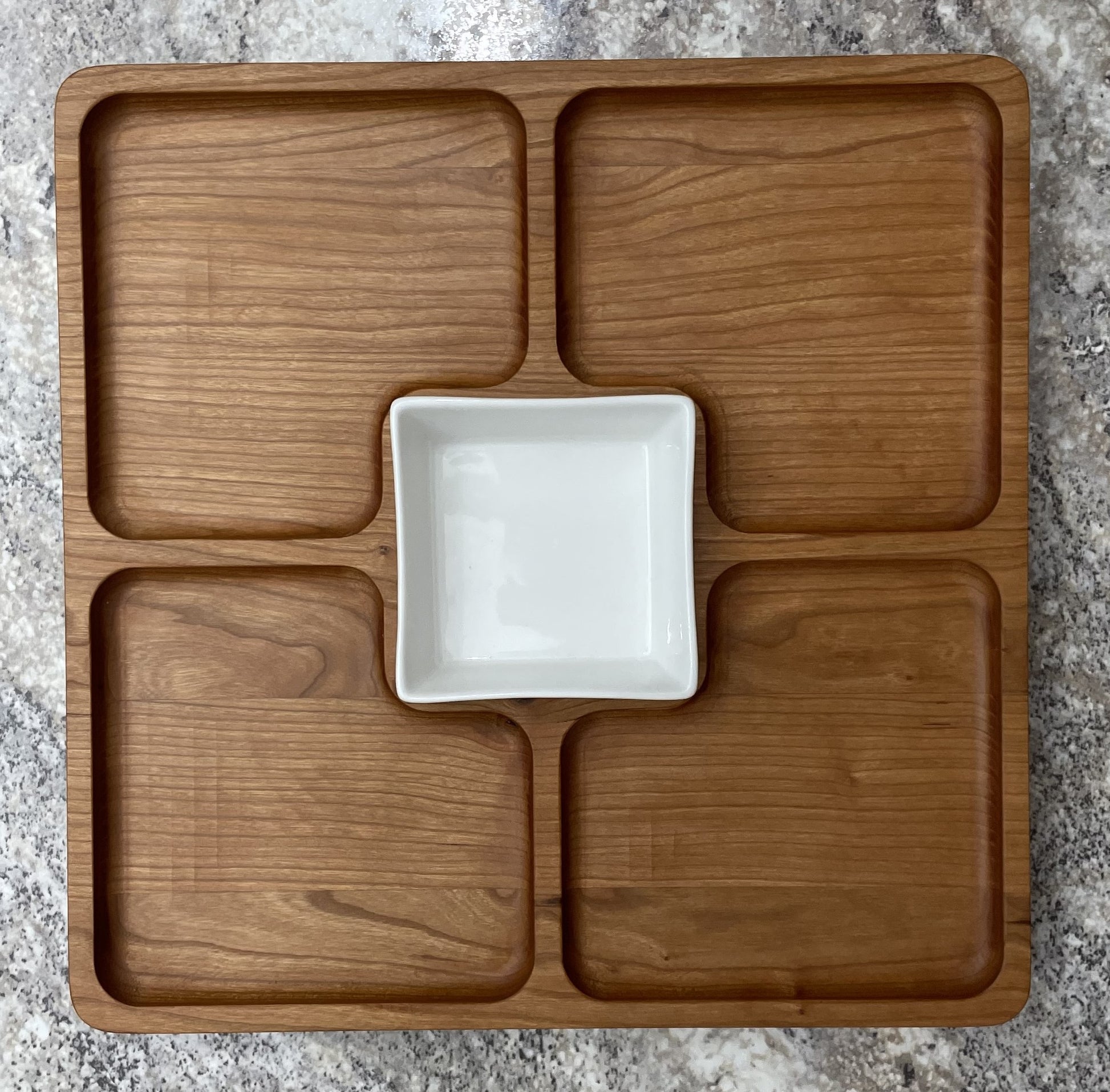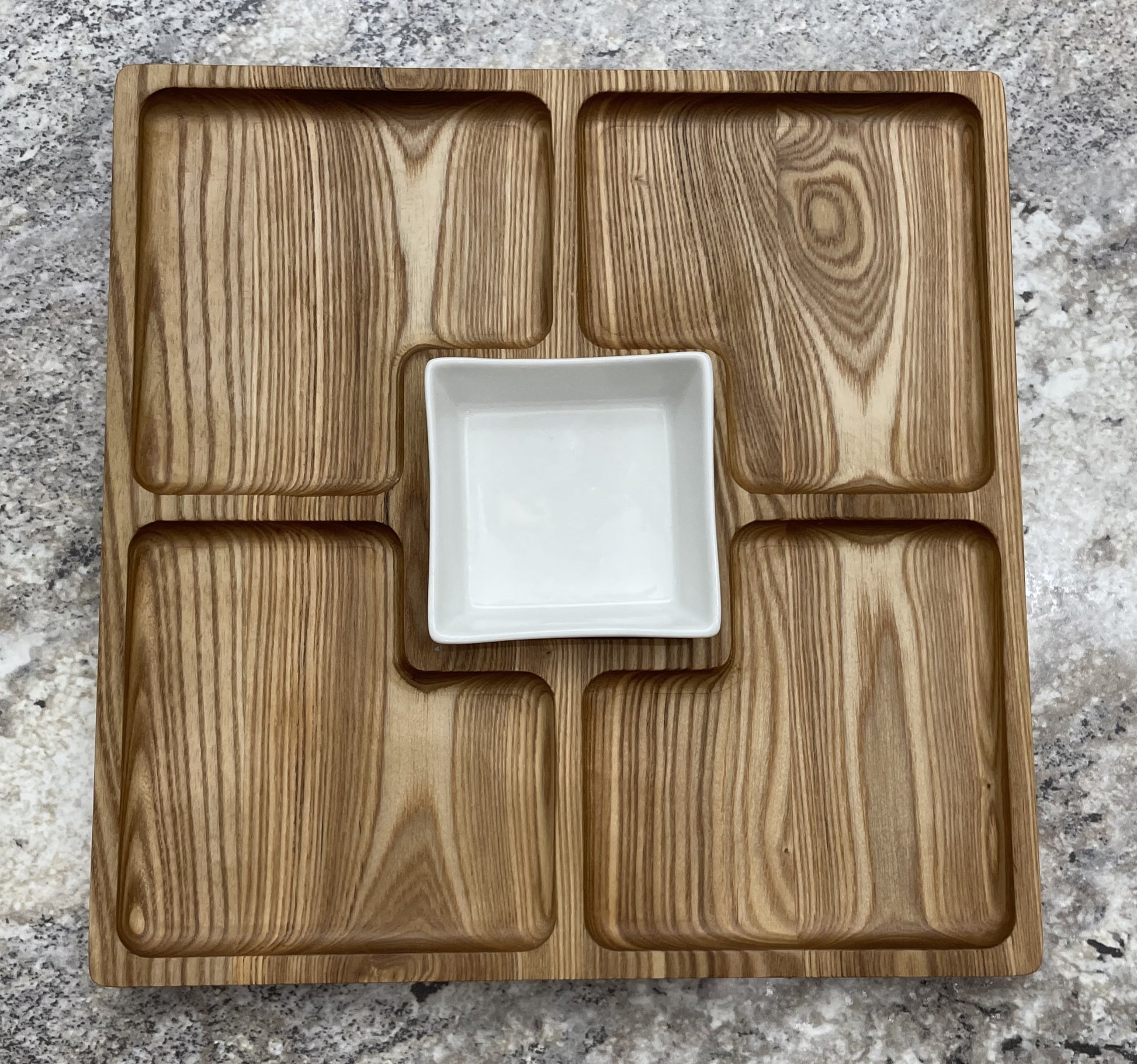 Handcrafted Wooden Square Four Hole Serving Tray with Center Dish
