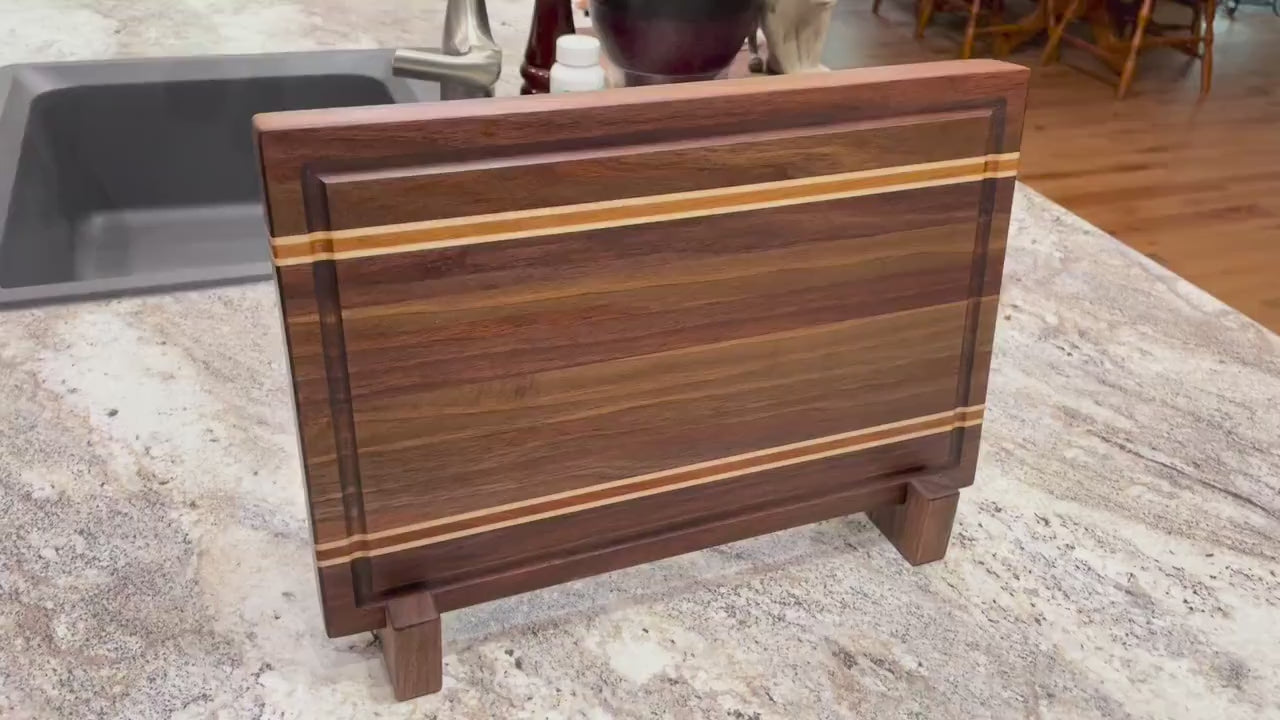 Walnut With Cherry & Maple Accent Strips Edge Grain Cutting Board